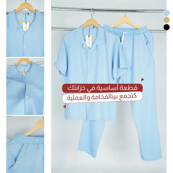 Composé d’une chemise manches courtes et d’un pantalon assorti, il est idéal pour les journées chaudes, les sorties ou un usage quotidien.